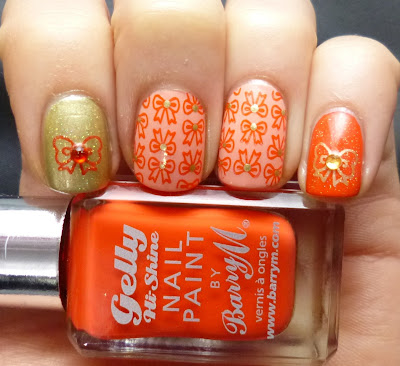 Using this cute little multi bow stamp from my new Gals plate GA36 I used Satsuma to stamp over the Peach Melba. I love that these Gelly polishes are so pigmented as it makes them perfect for stamping and a bargain at only £4 each.