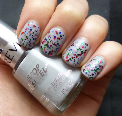 As you can see I layered this multi glitter over my all time favourite grey - Revlon Hazy. Seriously the formula on Hazy is a dream and it dries in a flash.